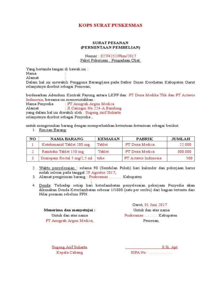 Contoh surat pesanan barang semi block .